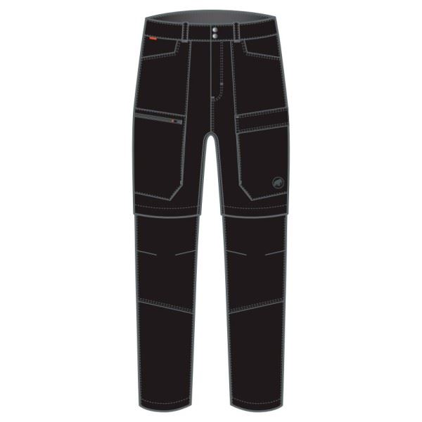Met behulp van drukknopen wordt de broek van Mammut goed dichtgemaakt. Twee zijritsen zorgen voor extra ventilatie in warm weer. Naast twee voorzakken en een achterzak zorgen twee broekzakken op het bovenbeen voor nog meer opbergruimte.